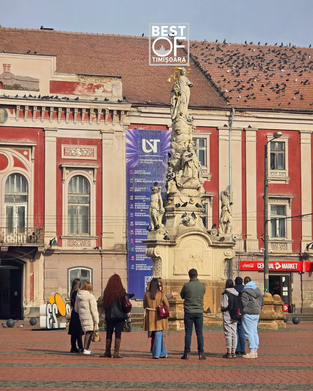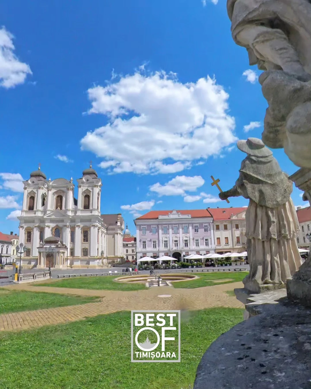 Ne continuăm apoi plimbarea spre eleganta Piață a Unirii, considerată pe scară largă drept una dintre cele mai frumoase piețe baroce din Europa Centrală. Veți putea admira repere remarcabile, precum Domul Romano-Catolic „Sfântul Gheorghe” și impresionantul Palat Baroc, ambele simboluri dăinuitoare ale erei imperiale.